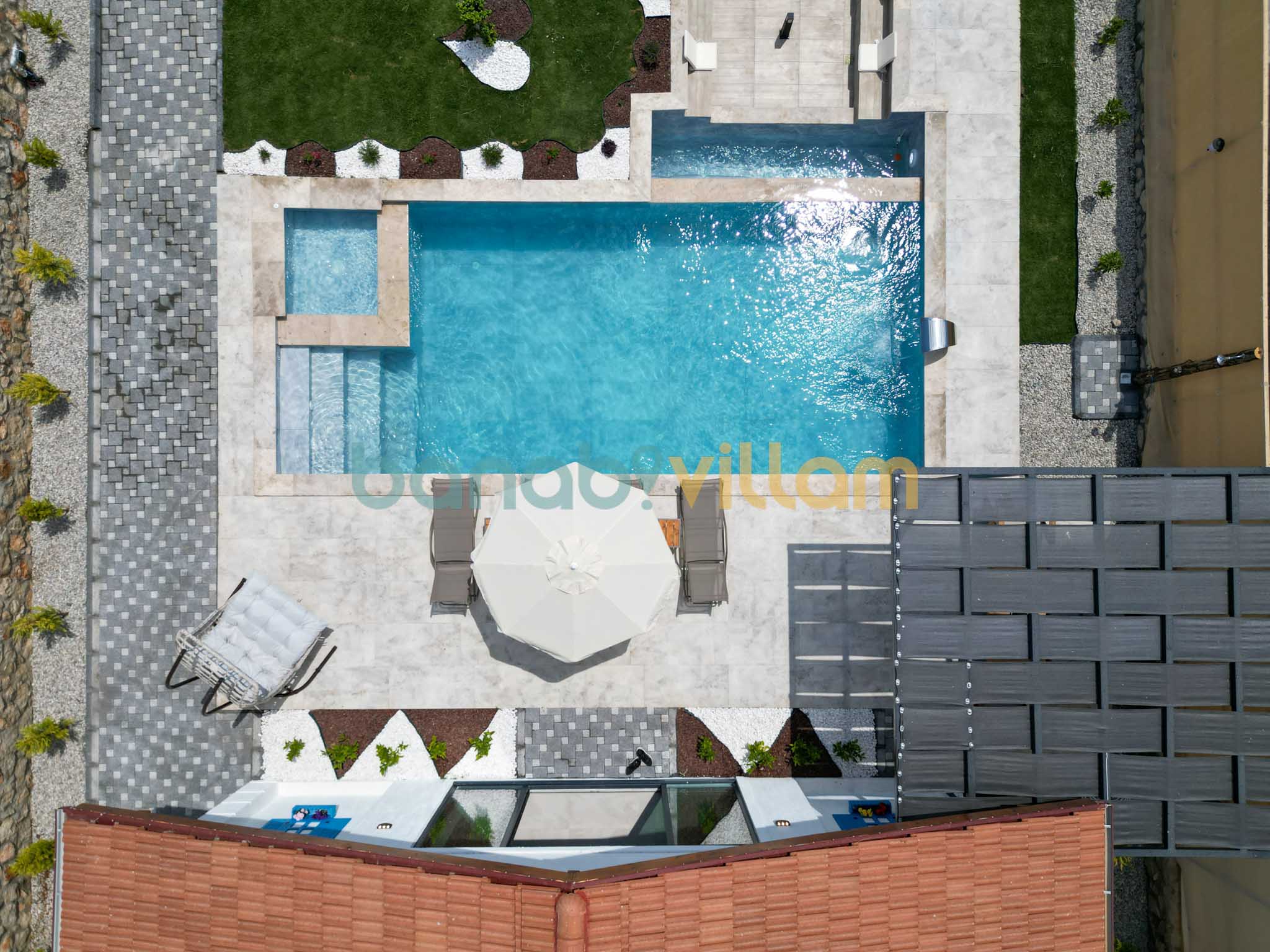 Havuzu kısmi korunaklıdır.