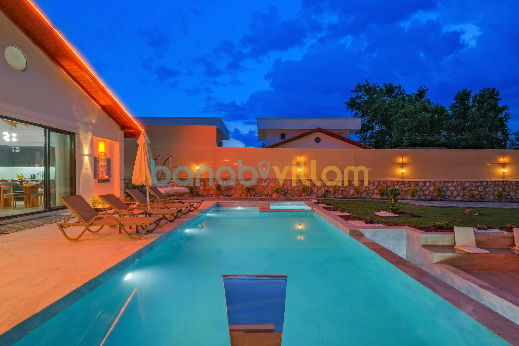 Muğla Seydikemer Çaltıözü’nde konumlanan villalarımız, doğayla iç içe ve sakin bir tatil arayan misafirler için ideal bir konaklama sunar. Şehir kalabalığından uzak konumu sayesinde aileler için huzurlu bir atmosfer sağlar. Özel yüzme havuzu, geniş bahçesi, konforlu yatak odaları ve modern iç tasarımıyla donatılan villalarımızda; bahçe oturma alanları, şezlonglar ve yemek alanlarıyla keyifli vakit geçirebilirsiniz. Tam donanımlı yaşam alanları, özel otoparkı ve doğa manzarasıyla villalarımız, konforlu ve keyifli bir tatil deneyimi sunmaktadır. NOT : Düzenli ilaçlamalar yapılsa dahi sinek, böcek, arı vb bulunabilmektedir. NOT : Bölgede plansız elektrik ve su kesintisi yaşanabilir.
