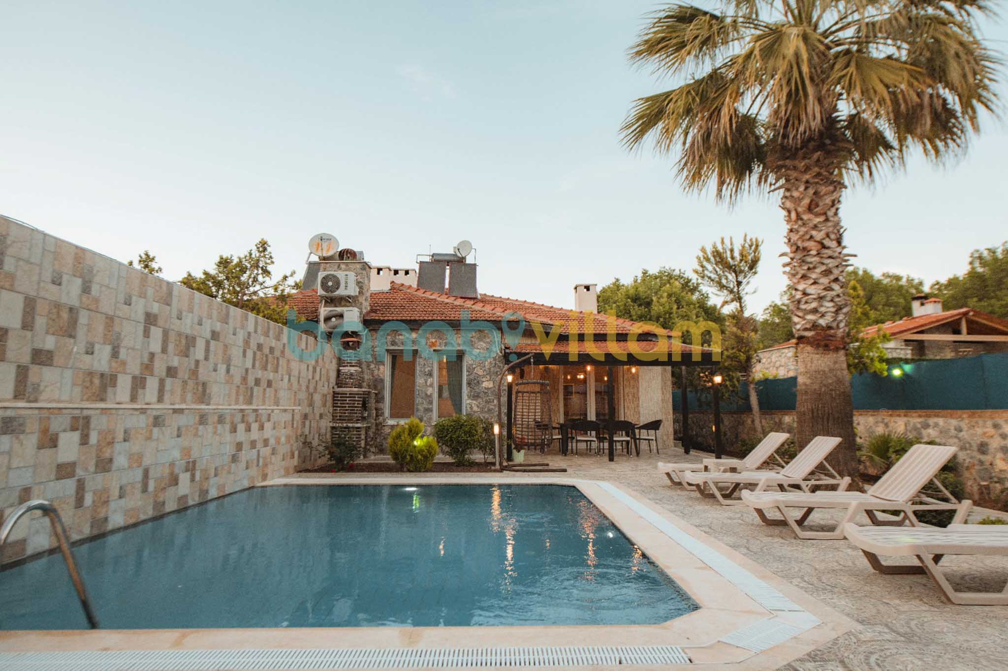 Fethiye’nin sakin ruhunu hissedebileceğiniz, doğayla iç içe konumlanmış bu özel villa; mahremiyet, konfor ve estetiği bir arada sunan ayrıcalıklı bir tatil deneyimi vadediyor. Muhafazakâr konseptte tasarlanan ve 6 kişilik konaklama kapasitesine sahip villamız, ferah yaşam alanları ve modern detaylarıyla öne çıkıyor. Doğa manzarasına açılan özel terasında gün batımını izlerken huzuru hissedebilir, jakuzide günün yorgunluğunu geride bırakabilirsiniz. Tarihi dokusuyla büyüleyen Kayaköy’ün eşsiz atmosferinde yer alan bu villa, sakinlik arayan misafirler için kusursuz bir kaçış noktası sunuyor. NOT : Villamızın fiyatlandırması EURO cinsindendir. NOT : Düzenli ilaçlamalar yapılsa dahi sinek, böcek, arı vb bulunabilmektedir. NOT : Bölgede plansız elektrik ve su kesintisi yaşanabilir.
