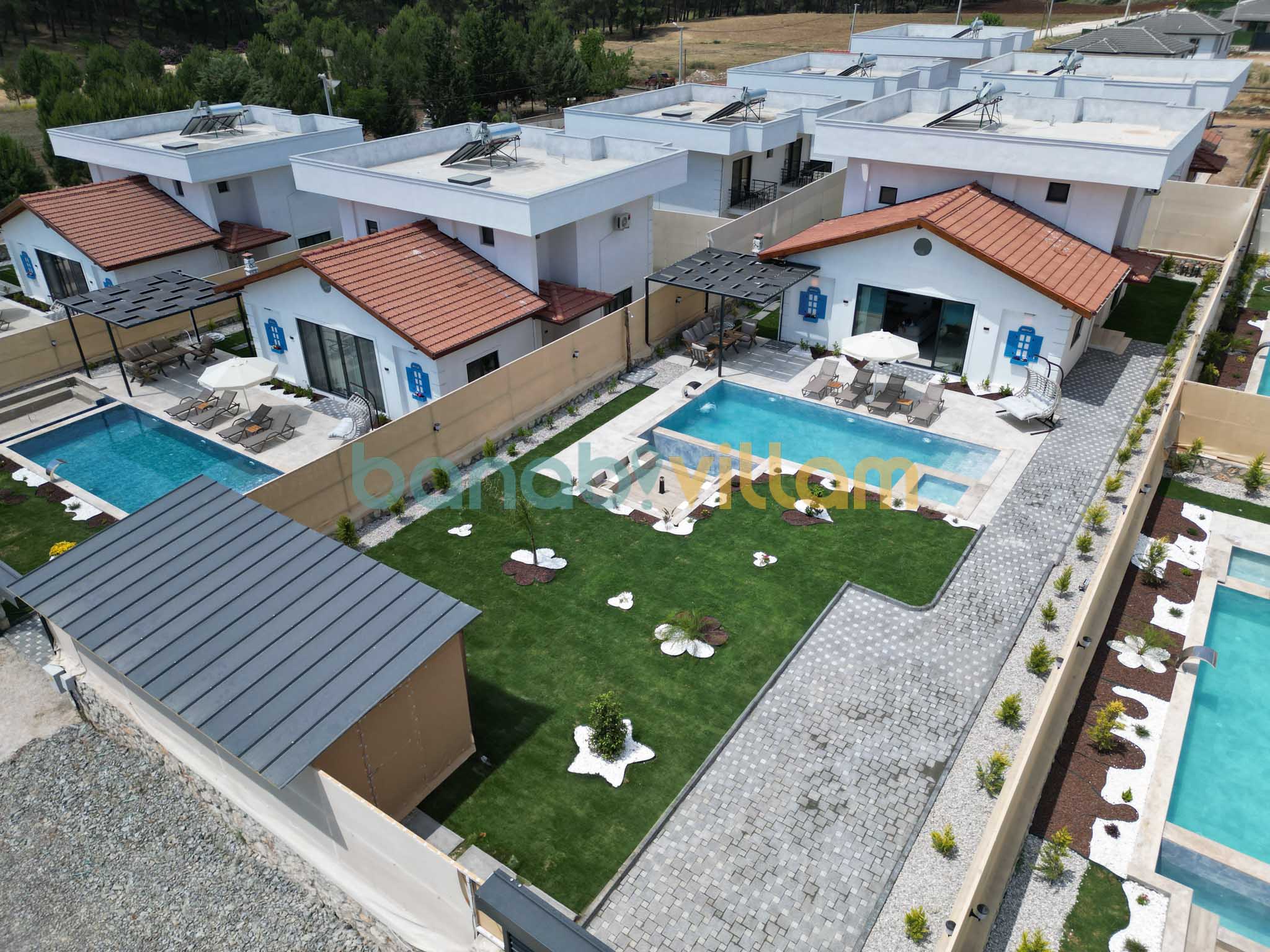 Muğla Seydikemer Çaltıözü’nde konumlanan villalarımız, doğayla iç içe ve sakin bir tatil arayan misafirler için ideal bir konaklama sunar. Şehir kalabalığından uzak konumu sayesinde aileler için huzurlu bir atmosfer sağlar. Özel yüzme havuzu, geniş bahçesi, konforlu yatak odaları ve modern iç tasarımıyla donatılan villalarımızda; bahçe oturma alanları, şezlonglar ve yemek alanlarıyla keyifli vakit geçirebilirsiniz. Tam donanımlı yaşam alanları, özel otoparkı ve doğa manzarasıyla villalarımız, konforlu ve keyifli bir tatil deneyimi sunmaktadır. NOT : Düzenli ilaçlamalar yapılsa dahi sinek, böcek, arı vb bulunabilmektedir. NOT : Bölgede plansız elektrik ve su kesintisi yaşanabilir.